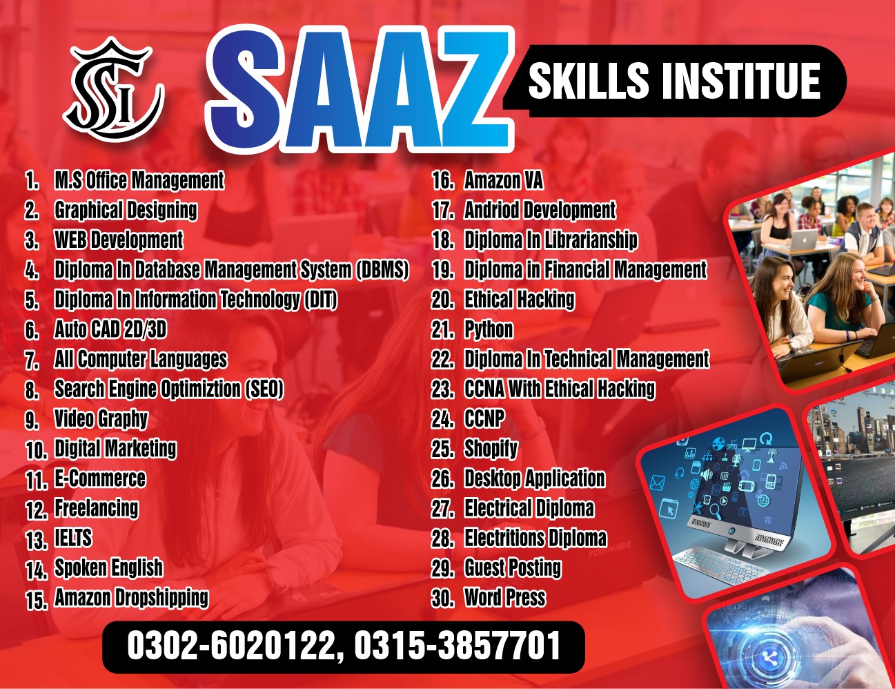 SAAZ Institutes is a training organization that offers various courses and programs to develop skills in different fields.